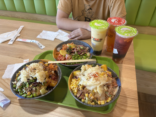 Wow so good. The fish taste fresh. Good portion size. You can choose from pre made or make your own. I had a family member get the Hawaiian bowl, I got the 2 protein and another family member get the 3 protein. Depending on if you get a pre made or the amount of protein the price ranges from $12-15. We also had boba, one size, delicious. Should run you about $6.50 ish with toppings.