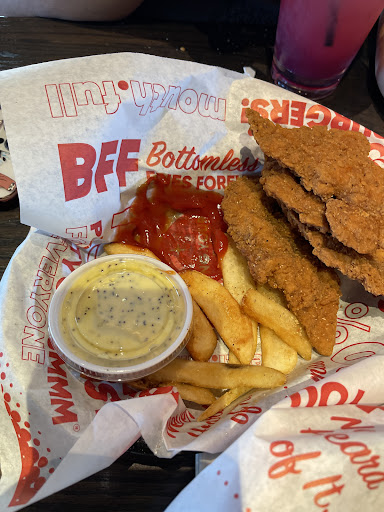 The food came out, everyone's French fries were cold. The 2 Sandwiches were veggie patties, they were soggy and under cooked. They literally felt like they liquefied in our hands 🫠. They also actually had an unpleasant taste to top it off, I would say they had been sitting for quite a while. The other 2 orders were chicken tenders they were both very over cooked and the chicken was hard and dry. Honestly nothing went right with our entire dining experience.
