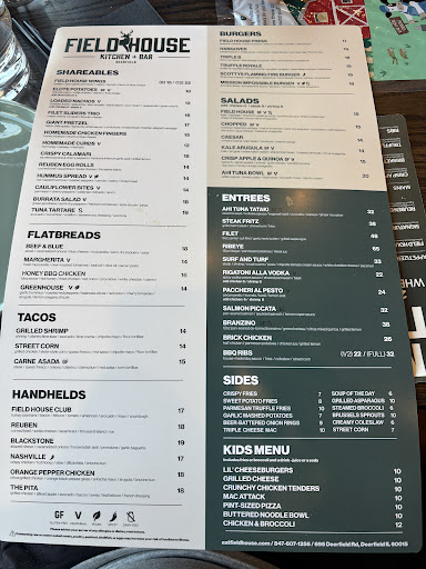 We had brick chicken with roasted potatoes. $26. Potatoes were cold. Chicken was good. We had a trouble with our reservation because they said no tables for 2 available in dining room. We could be seated at a high top table /chair by bar. We tried it but the table next to us the man was extremely loud and we said not acceptable. We saw seat available in dining room but hostess was rude to us said we should have stated on reservation that we didnāt want a high top chair. Then the owner came up to us and said he would take care of us. He did find a table for us in dining room. We had just paid the bill and that hostess came up to us and said that the next reservation was expected and that we should leave. She walked away. I asked to talk to the owner and after 5 plus minutes he made it to our table. I asked him if it was policy for the hostess to rudely come by and tell people that they needed to leave. He then said that it was policy after one hour 35 minutes to tell people to leave. I said oh and that I wanted him to know that the chicken was good but the potatoes were cold and I thought hostess was rude and that we werenāt going to come back again. He then told me that I was rude to hostess. My fiend said that I never spoke to the hostess at all. He told her that she had an attitude and that from the start we were disrespectful to his staff. There were other tables that had been there as long as us but no one came up to them to tell them to leave. After I stated that we would not come back to the restaurant the owner never addressed the cold potatoes but rather focused that it was us who was rude. We left and Iām not recommending this restaurant. The restaurant is pricey, extremely loud and the hostess and owner were rude. I have never written a negative review nor stated that I would never come back to a restaurant but I was so offended by our treatment at Field House that I felt that I had to write this negative review for this...