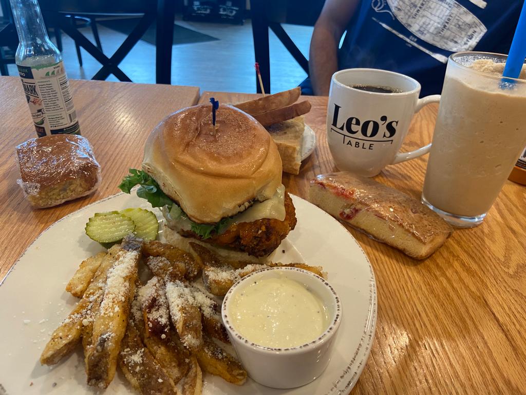 I have to say, the unexpected visit to Leo's Table was our best part of an amazing day. We came in a little after 1. Looking around, the atmosphere, music and decor was comforting and relaxing, the young man who greeted us and gave us our menus was very polite and friendly. We sat down and looked over the menu and decided on a brunch burger and fries, 2 grilled cheeses for our 4 and 2 year old with them splitting a fry, and chocolate pancakes for my wife. We went up and ordered from a very friendly and pleasant young woman who made us feel very comfortable and at home in the establishment. When our food was ready, it all looked and smelled amazing and tasted even better! The same young woman ( i think her name was Jess?) was extra attentive and helpful in making sure we had everything we could have wanted. Upon asking her about the fruity pebbles donuts she highly recommended them and we purchased one for when we got home. Somehow, the donut was even better than the rest of the amazing food!!!