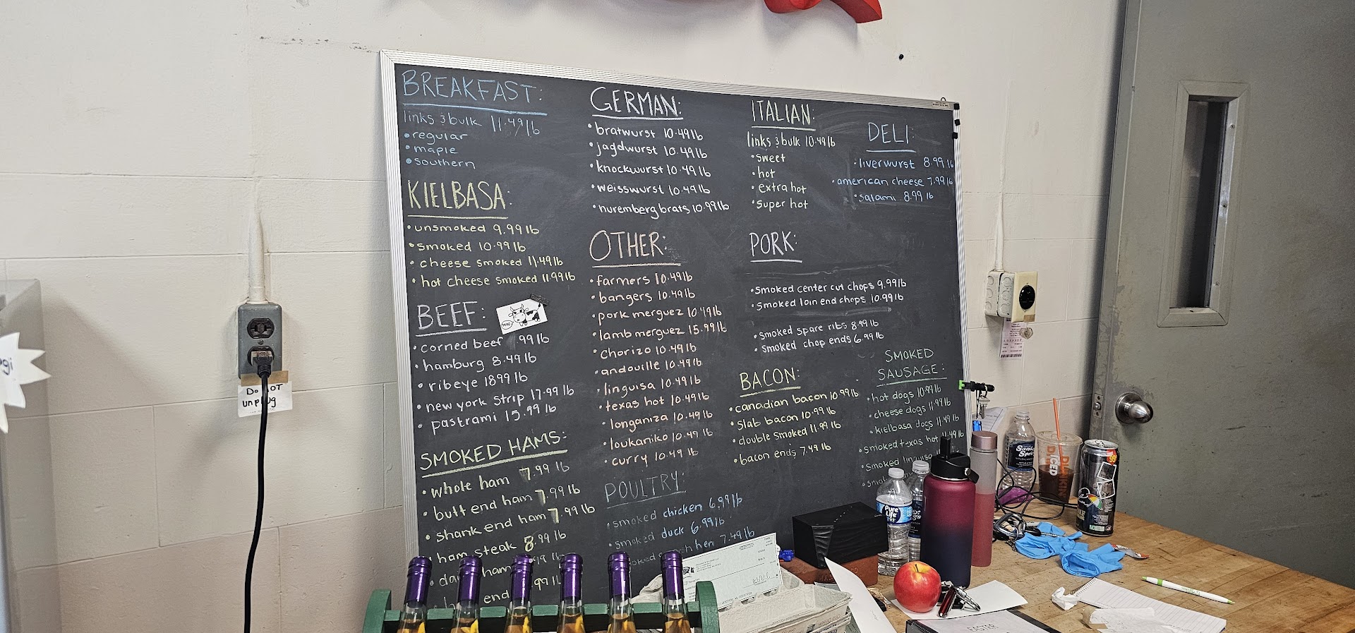 seriously - they make their own sausage, it's local, delicious, you can get it fresh (or frozen), their smoked bacon is out of this world, and they were so freaking amazing that even when they lost power and we drove 2 hours to go here and were 'technically' closed - they estimated with cash so they could electronically put the transaction in when the power came back on for us.