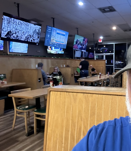 When you first walk in you can tell that they want to make sure you’re covered with TV’s! We got seated and when the waiter came she wasn’t in a good mood at all and I felt like we were a bother to her right from the start. First time at any Beef O Brady’s any where so we weren’t in a hurry and wanted to enjoy what they had to offer. She seemed annoyed that we were asking questions about drinks, appetizers and the entrees. We ordered drinks and the sampler planter and asked if she could get the drinks and put in the order for the appetizers as we still weren’t sure about entrees. When she came back with the drinks we were ready to order and she”huffed” under her breath. We got the sampler and everything on it was really good but the mini corn dogs as the center was cold still. My wife got the pulled pork and Mac and cheese and it was pretty good. I got an Amarillo bacon hamburger it was called I think. First bite was a little disappointing as it was bland and this is to have spicy cheese and jalapeños. The second bite the whole “uncooked” bacon came out with it and I about puked. Now the bacon in reality was partially cooked at both ends but the middle was not. Each has a preference on bacon but the bacon should have at least seen the grill while passing over it to my sandwich. Take out the bacon experience and I’d rate the sandwich a 3 but the bacon took it to a 0. The bathrooms were well aged and not well kept. The table top surface where we sat was totally gone and needed to be redone as it was sticky. For us it was an odd experience with the appetizers being so good but the hamburger not good at all. If I’m spending $50 to eat it needs to be better than this establishment.