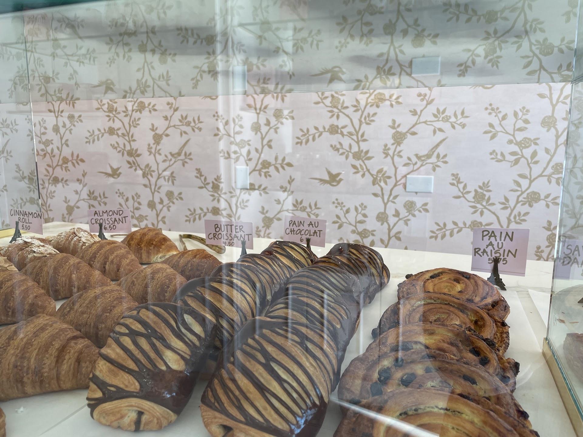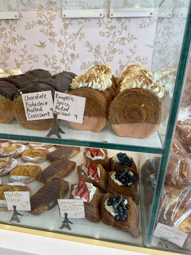 Read moreThe pastries here are out of this world! All of the ingredients are imported from France, which makes a huge difference because it’s less sugar and better quality than American ingredients. The seasonal menu is wonderful. I got the caramel apple butter chai iced latte and a pumpkin spice cinnamon roll as well as some cakes. Really recommend the chai I got. It’s my new favorite drink I’m obsessed. The staff are very kind and knowledgeable. They take pride in their food and take care of the space. They were super friendly and helpful. Everything is baked fresh daily and flavors for the rolled and cubed croissants change everyday, so you never know what you will get, but it’s guaranteed delicious. They are known for their rolled, square, and filled croissants, so be sure to try those. The chocolate croissants are excellent. Literally everything is so good you can’t go wrong. The cakes are life changing incredible. I recommend everyone try at least one. Some are gluten free so just ask. My favorites are le nuage, guava strawberry, le royal, vanilla bean tart, blackberry earl grey, mango passion fruit, the list goes on… They also have a whole wall of products from France and Europe. They even have Swedish candy! I got the Nina’s Marie Antoinette tea and Swedish candy and they were both so delicious....