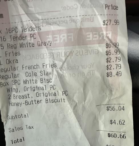 Read moreToday I went through the drive through to pick up dinner on the way home. I ordered the Wednesday 8PC Dark special a 3 PC Tender, after paying for my order I was instructed to pull to the side and wait. After about 10 minutes my order arrived and I proceeded to drive home. Imagine my surprise when I got home to discover that my 8PC was a 7PC and one of them was a wing. When I called I was told that they would replace the missing pieces the next time I come in but how does that feed my family tonight. Very poor customer service. In my opinion the cost savings is not worth the poor...