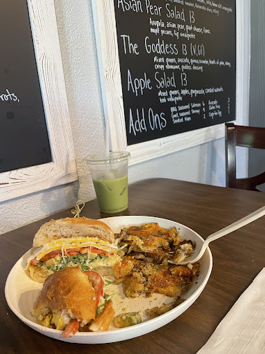 One of the best cafes I have been to in a long time. I had the blueberry matcha and flatbread special with shrimp. WOW. The shrimp was some of the best I have ever had!!!! The pesto flatbread was so good I couldn’t stop telling everyone I saw later that day - the crust had so. much. flavor. And the toppings were so delicious…I keep sayings it’s one of the best meals I’ve had in a long time…The matcha was great, definitely not sweet compared to other cafes, which I appreciated. You can tell the food here is made with lots of love and incredible expertise. And for the price?? I’m shocked there wasn’t a line out the door when I came at lunch on Thursday. This is a new staple for me, and I can’t wait to try more items like the crepes and breakfast burrito! Very filling portions, tasted SO fresh and nourishing, like it was grown in the backyard. The garden out back was the icing on the cake-what a rare, beautiful find !!! Love love love! Oh, and of course, the sweetest customer service. Can’t wait to bring all my favorite people here...