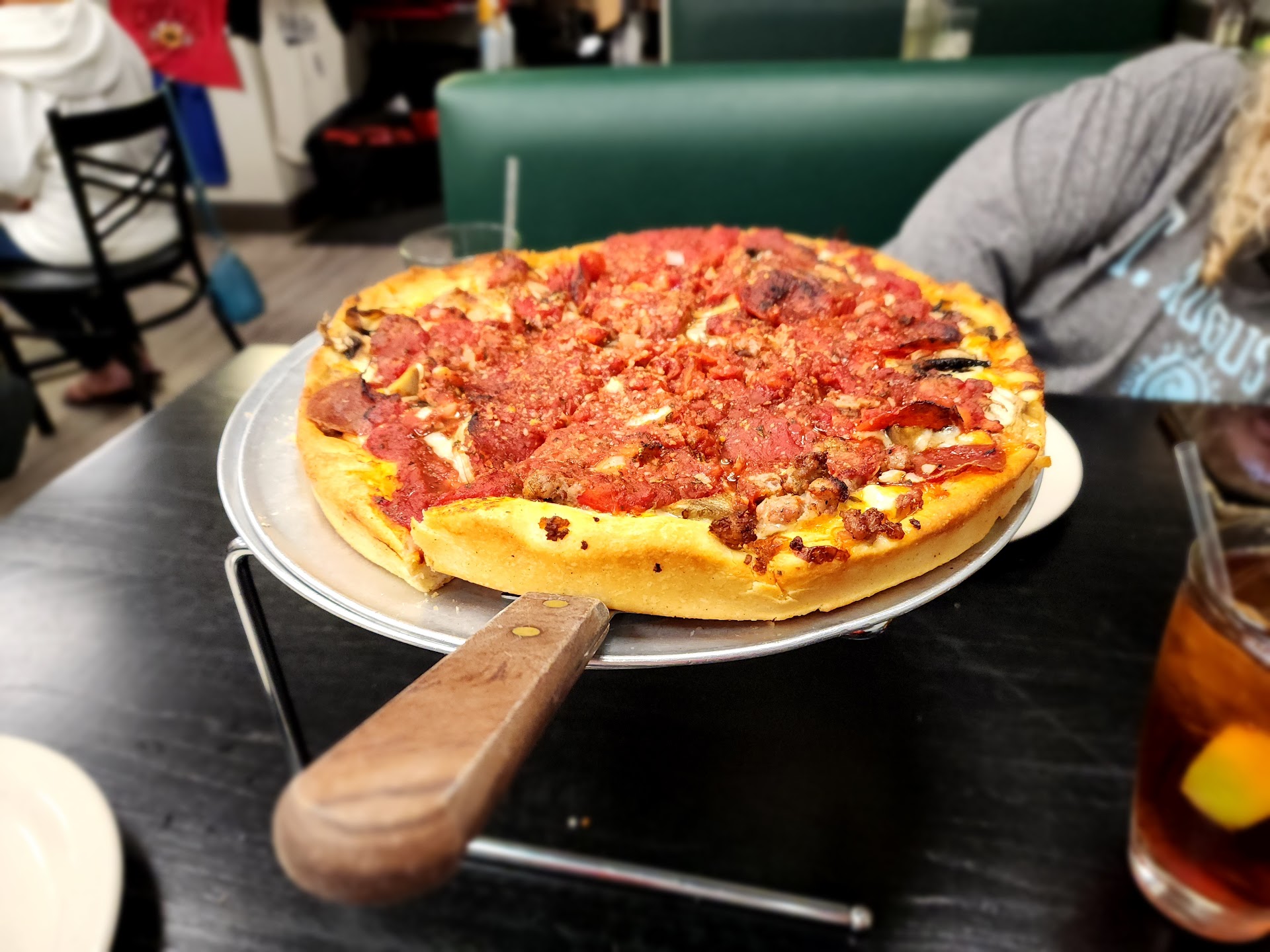 I just had to erase my good review from 9 mths ago so I can put an updated review in here and how I was just handled by an owner of the establishment. They lost my business. Today is 5-16-20 and yesterday I ordered take out from Dobro's and this is what happened. One, being that we are in a pandemic and just now starting to come out of phase 1, I noticed upon entry, not one of the workers in the dining room, or in the kitchen had gloves on OR a mask in dealing with the public for carry out. I bring my food home, eat it. I had the cobb salad and 8" Chicago deep dish pan pizza with pepporoni and sausage, onion and pepper and in the cobb salad it had chicken, bacon, along with the roquefort dressing. I don't know the exact time frame of 'how long' after did my stomach begin hurting and cramping but I did tell the woman on the phone when I called to complain that I had a case of food poisoning it was maybe 30 min? It was longer than that but I threw that out there. Before I get into that though, the salad with the bacon, it was not like bacon, but strips of 'fat' that was thrown all into my salad which I had to pick out because it was gross! The pizza itself look like it was way over cooked, the meat was burnt on the top of it and the crust also semi burnt looking. Back to the call. So I let the woman, who on my second call to her to ask 'who' she was, told me she was one of the owners with her husband. I began to tell her I had a case of food poisoning and she basically argued with me, treated me like I was lying and not once did she apologize to me for being in complete discomfort and cramping into the night and this morning still felt pretty nauseous. Her 'tone' towards me was very prickly and condescending and I felt like I had to actually defend myself to this person. Not a good experience at all. She was telling me that I did NOT have food poisoning and I said look, YES, it is... I have had it before! She almost made it seem like I was calling to get a refund which I had to tell her, I am calling to let you know that some thing in your restaurant is tainted. I am thinking it was the blue cheese dressing. It could have been the eggs? Who knows. But you do not TREAT your customers like this! I will never recommend them to anyone again and I will also be calling the health dept first...