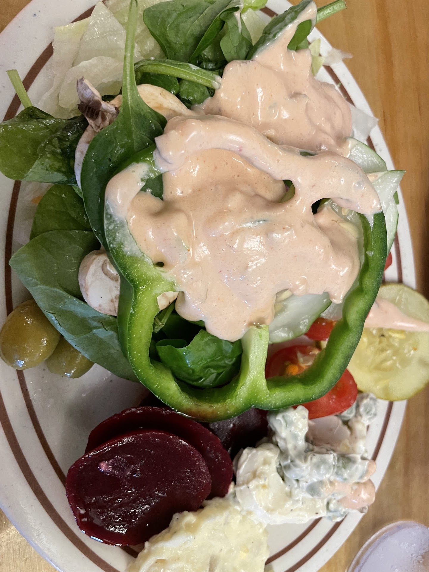 Read moreFirst time here & really wasn't too impressed. Actually, we're pretty disappointed. It smelled GREAT outside, maybe they're using BK's technique of pumping the smell outside to draw you in?? When we walked in, we weren't acknowledged. Okay, we can kinda look past that a little. Since it was our first time there (hubby told her), we asked the waitress about portion size. She gave us a look like we were completely crazy & said, "what do you mean?" in a bit of a rude tone. We reminded her it was our first time & that some places are heavy handed & others aren't. She gave us another weird look & said, "normal?" Okay, whatever. We ordered, my food was BARELY warm. The butter didn't REMOTELY melt on my corn on the cob or toasted bread, it just stood there. My sliced pork's temperature was barely safe to eat. My husband's? He nearly burnt his mouth because all of his food was hot... The way it should be. We compared our quality of service to the rest of the place & it was NOT the same (same waitress). When she gave us the check, she didn't say anything & didn't know we had to pay up front, she never told us. I reminded her that we didn't know where to pay because again, it was our first time there. Others were offered to-go drinks (same waitress) & we weren't. We're NOT going back again. We'll stick with...