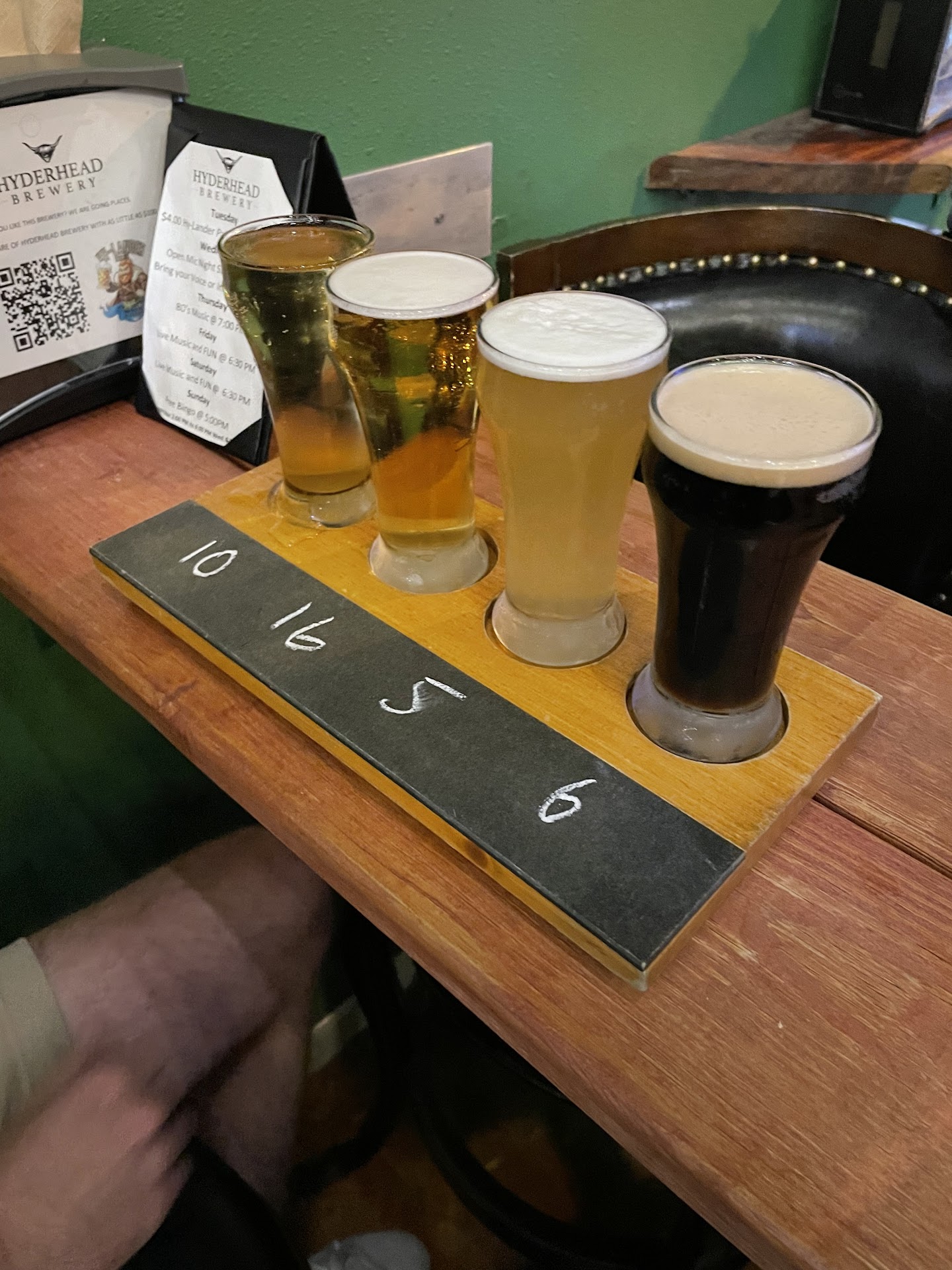 Being able to sample a beer before purchasing is super awesome. The one I ordered, was very good. I ordered the apple cider one but honestly, the color and flavor appeared to be more of the super hen beer which is the berry one. It was still very good. The food is limited but the bratwurst was well done and juicy. The steak mac and cheese was awesome. I do not like sauerkraut or mustard. And pickles just make me sick so I topped my brat with the mac and cheese and it worked so well for me.