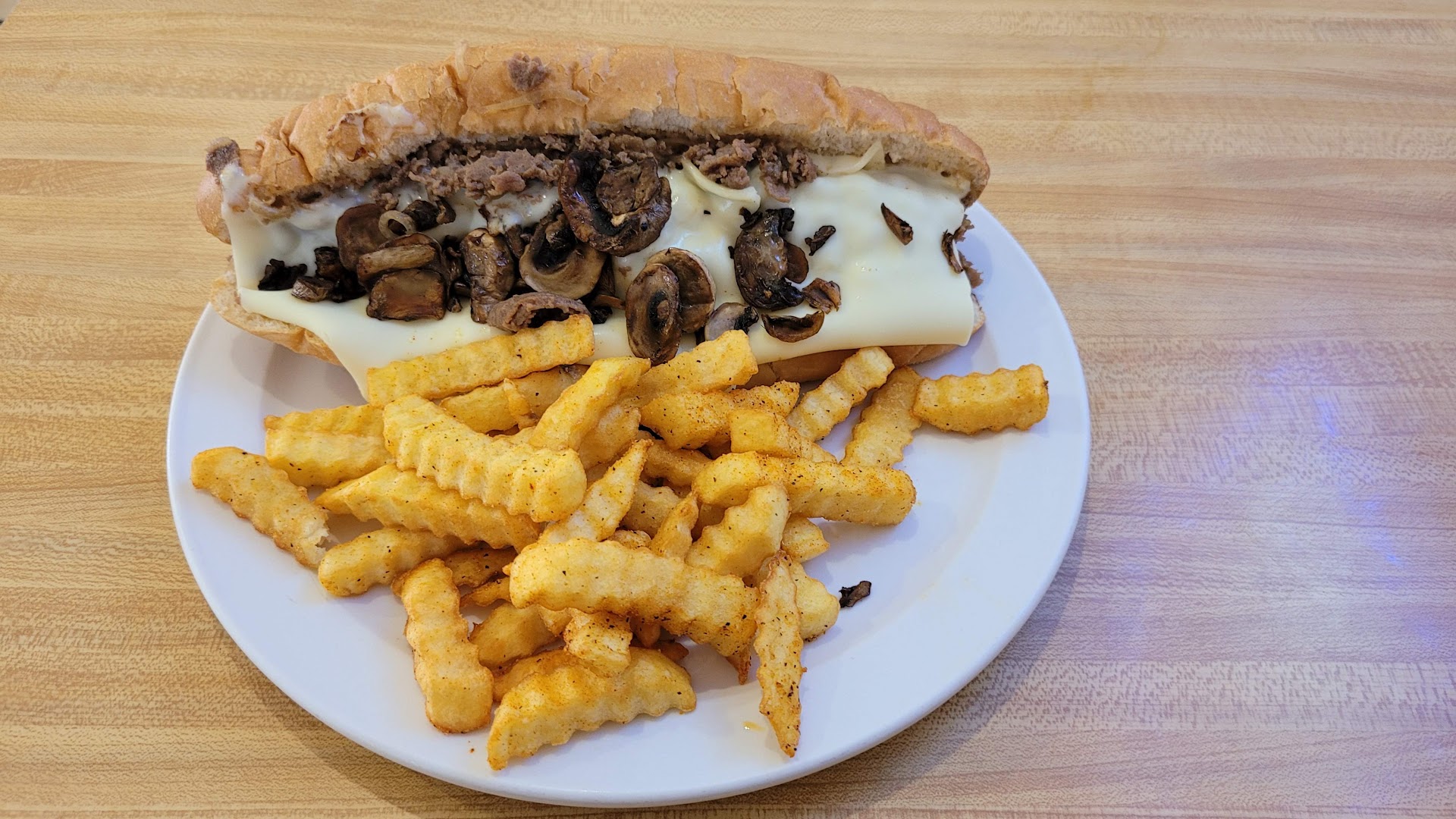 Read moreThis review is sort of tricky because if the review was solely on the food I’d give it a four or five stars if the review was on the service I would give it negative stars. The establishment itself is definitely not fine dining by any stretch of the imagination which is fine however, the older woman who served us was not very friendly was very short with us and gave a lot of we don’t have any of that, I don’t know, we only have a couple beer choices. 🤷🏻♀️ I asked for coleslaw she said we don’t have that(coleslaw & potato salad was listed as a side option to the philly on the menu) I was asking what sides I could get with my Philly she basically said salad or fries. I didn’t notice there was onion rings on the menu and I seen someone else with onion rings which looked more appetizing than the fries when I mentioned to her oh I didn’t see onion rings on the menu she got a very sarcastic tone and got an attitude and said oh maybe we need to put up a sign! Then I don’t know if she thought she was being funny but it was pretty rude she comes back with a piece of paper with onion rings written on it stuck in a fork. Also, the 1st cup of water I had seemed OK but then when I needed a refill the 2nd cup of water she brought tasted of chemicals when I told her this instead of getting me a new water she just simply dumped the water in a to go cup not sure what that was about I also used the women’s restroom and found out that they did not have any hand soap at all which was disturbing I did mention it and they did refill it. Overall if I was ever to eat there again I definitely would get my food to go definitely not anywhere I want to go sit inside...