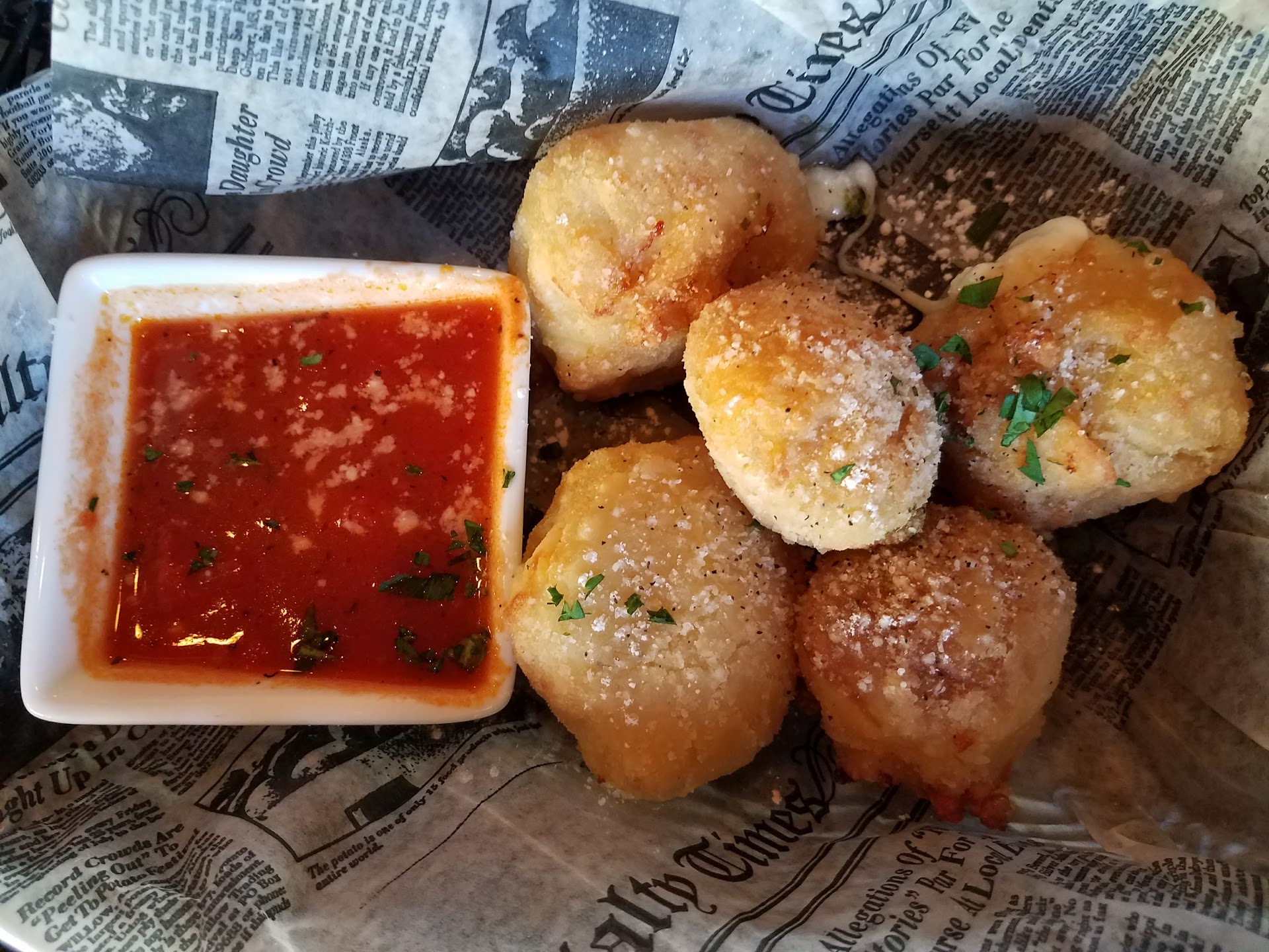 Pretzel Baguettes: the pretzels themselves were decent and fluffy but lacked any additional flavor. The cheese sauce that came with it was mainly grease. I should have known better than to dip into it seeing the grease sitting on top. Overall not the worst app I’ve ever had but nothing special worth 11$. 3/5