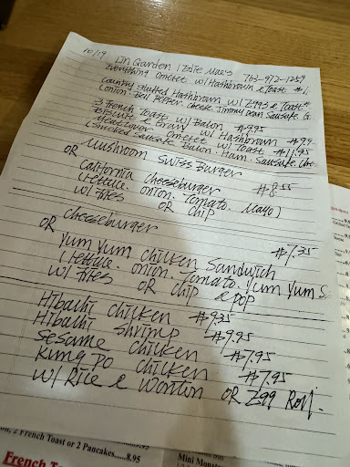 Went out for breakfast @ Edie Mae's with 6 others & As soon as we picked our table & sat down, The waitress was promptly at our table, very friendly, asking us if we were interested in ice water , Coffee, Hot Chocolate, or anything else to drink. We all agreed to ice water & 4 of us ordered coffee, & 3 of us ordered hot chocolate. The coffee drinkers were all asked if they wanted cream & sugar with their coffee & 2 wanted coffee black with sugar & 1 wanted cream & sugar & added Extra cream & sugar also please since I use more then most. The waitress asked the 3 if they were interested in whip cream in their hot chocolate & all replied yes. The waitress observed that we were thirsty & also asked if any of us wanted more water & we all replied Yes. She said she be right back in a min or 2 with our menus & beverages with a smile & friendly voice & stopped at 2 other tables to take bev orders on her way towards the kitchen & filled 4 trays up quickly & picked up a stack of menus & filled approx 20 cups of coffee & delivered menus & coffees to the 2 tables she stopped at after she was at our table & refilled coffees for another 2 tables & went to grab 2 trays & quickly was back to our table in less then 3 mins. The restaurant was packed so I expected a extra couple minutes wait & delivered the 4 coffees & 3 Hot Chocolates with whip cream. Refilled everyones water cup & put a extra pitcher of water on the table, condiments, & coffee pitcher for refills & apologized for the extra wait. Handed us all menus & let us know what the specials were, & explained very kindly that it's been packed for hours & asked us if we were in any rush, etc & asked if my son wanted some crayons & coloring book or paper & if we wanted anything else & if we were ready to order yet. I told her were good & not in a big hurry to give her a chance to attend to her other customers & gave her a heads up that were just order in approx 20 mins. I really loved the homemade whipped cream on my hot Chocolate & the 3 of us were impressed & enjoyed our hot chocolates while the other 4 were all good with their coffee. I decided to step out for a quick smoke since we had planned to relax for a while. I reentered when I was finished & the waitress was back to take our orders & asked if we all enjoyed our uot beverages & if we all were ready to order yet & yes we were. Lol. 5 of us ordered Steak & eggs made over easy with toast, pancakes, side order of bacon & stuffed hashbrowns. The other 2 ordered ham & cheese omelets with onions, peppers & mushrooms with stuffed hashbrowns & cinnamon rolls. I really loved my steak which was tender & done all the way, but still juicy which Not too many other restaurants could make a steak perfectly the way I love it. My stuffed hashbrowns were too die for & I decided to order a extra order to go for my breakfast for the next morning. Pancakes were huge & done to perfection & bacon done the way I ordered it brown & crispy no burnt. My eggs were done over easy & perfect & I was surprised that they were large & enough yoke to finish both pieces of toast without running out of yoke which is one of the main reasons why I've always enjoyed eating at Edies Restaurant. One of my pet peeves at most restaurants is they break my yolks & try to hide it under other food so out of 3 eggs I dont have enough yolks to eat 2 pieces of toast, but I never had to deal with that or never had any thing to complain about whenever I eat at Edies. I also use to eat at Edies Restaurant when it was located downtown Delano & also enjoyed working in her restaurant as well when I lived in a apartment above her restaurant. I Highly recommend The breakfasts esp stuffed hashbrowns or burgers & the Hawaiian Chicken Salad or any of her pies. I loved everything I had ever tried, but haven't tried the Chinese food there yet. I'll definently continue to keep going back to Eat At Edies Restaurant...