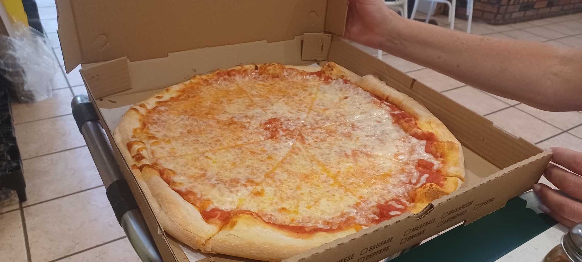Read morePizza, very very thin! Hardly any sauce-dry. Shrinkflation here, cost $15.99 for a plain Pizza! 1 topping $3.00, special topping $5.00 extra, that is outrageously expensive!!! Not worth paying for, that's the cost for another Pizza!!! 3 slices of pizza = $15.00....that's 5 slices less than a Pie! Weis frozen pizza is better and with toppings for half the Price! Burgers and Salads....Boring! All food is very EXPENSIVE, can't feed a family with these prices! LOOKS like Good Times ... NOT a Good Time ... RIP Good Times!!! Definitely WON'T be back. Totally...
