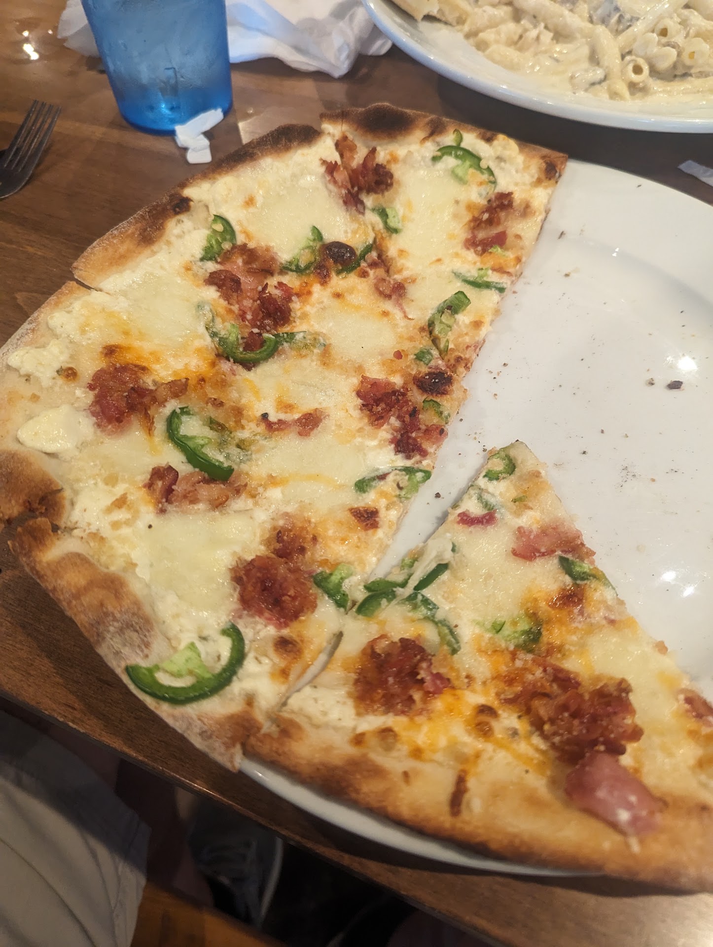 We boxed our orders up, and left when hers finally arrived. My pizza was cold by this point. The kids all really liked the pasta that they ordered.