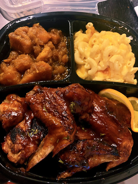 We ordered for delivery through Door Dash - they also deliver through Uber Eats and I think Caviar and GrubHub, but it wasn't showing as available on the other ones at that time. Ordering through the app was pretty simple and though it said it would take longer to get to us (we ordered during peak dinner time on a Friday night so it's expected), it seemed like it came earlier than originally given. The platters we got were: Boneless Breast (w/ Mac&cheese and Green beans), Whiting (w/Candied Yams and Mac&cheese) and Pork Ribs Full (w/ BBQ Baked Beans and Collard Greens). It was soooo good! They gave good sized portions, food was still hot when we got it, well-seasoned and had flavor to it, both the meats and the sides were good which was great, meats were tender.... The food was just amazing!
