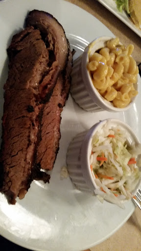 The cucumber/onion salad was pretty good, smaller portion, but for some reason all BBQ places love giving your a 2oz side, like cucumbers and onions and vinegar cost practically anything. The deluxe mac and cheese for $2 extra (I don't feel like looking up the exact name and price, but that's close) was flavorless mac and cheese, with a bit of extra cheese sprinkled on top and some bacon. A 3 year old would have liked it, but it wasn't "deluxe" or whatever nonsense. I'd doubt there was more than 1 (maybe 2) type of cheese in it at all, definitely no gouda or gruyere, no baked crust, or cheesy gooeyness.