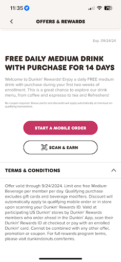 Read moreWhile waiting in the drive-thru, I noticed the huge sign that said “free medium drink with purchase” for new member. So I downloaded the app to take advantage of the deal. When I got to the window, I showed my app on my phone to inquire. The young lady stated that the offer only applied to coffee and not the drink that I ordered. I pointed to the sticker on their window that clearly said “free medium drink” not free medium coffee. She stood firm stating that it only applied to coffee. I paid then checked the terms and condition in the offer after I pulled out of line. It actual states, “This is a great chance to explore our drink menu, from coffee and expressos to tea and Refreshers.” There are no exclusions mentioned for the free drink and it doesn’t state that it only applies to coffee. Not sure what scam they are running. Be warned! This is...