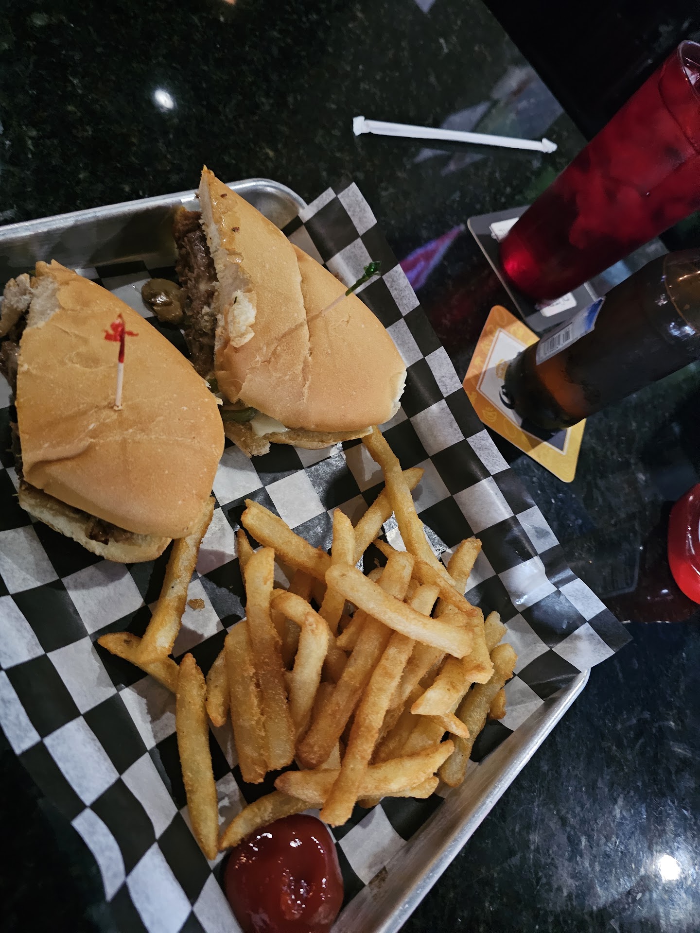 This was our first time in and it was at lunch time so my rating is based on those facts. The place looks fun for a big game or a night out. It is really cool - lots of tvs, keno, darts, and pool tables. The staff was friendly and efficient. Julia is a great waitress. The wings were really good. I had the ruben sandwich with Cole slaw which the coleslaw was really good and the Ruben sandwich was ok. All in all not a bad place, i need to stop back for a...