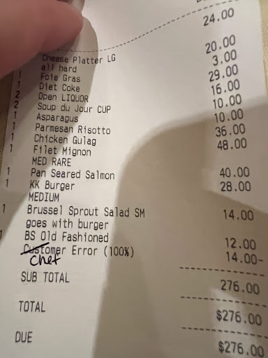 I ordered an entree but asked for a $14 salad as side for it, it was delivered on a tea cup plate and had wilted tomatoâs and brown avacados, I sent it back and said it was no good, they took it off the bill and on the check stated âcustomer errorâ (I corrected that)đ¤Łđ¤Ł