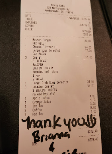 Read moreKrazy Kats bills itself as a fine dining establishment, but the restaurant fails in numerous respects. We were celebrating the birthday of my elderly mother, who loves all things chocolate so I called a few days ahead to ask the restaurant if they had any sort of chocolate cake on the menu and if not, could the restaurant bake us one, something we'd happily pay extra for. No, I was informed by the condescending host, they did not serve "birthday cake" and they were not a bakery so would not bake a cake. When I asked if I could bring a cake she responded that if I felt I must I could go ahead.