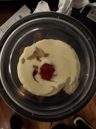 I am now embarrassed, upset, thirsty, saddened, and in pain due to the very uncomfortable chairs, and the treatment we had received. Despite my better judgement, we decided to split a takeaway dessert. I expected, especially since multiple other patrons asked for a takeaway dessert, that the restaurant would be capable of providing an adequate receptacle for their own food, seeing as they do make it and such. But when I was handed the check, with the dessert, it was smashed into a glorified Tupperware container.