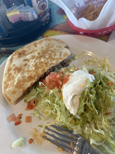 When you sit down, you'll get chips and salsa. They have a huge menu with lunch and dinner dishes. The prices are on the higher end. I had the enchiladas mexicanas. It comes with rice, refried beans, and a mound of lettuce. Everything was cooked thoroughly and seasoned well, but it came out really quickly, which was concerning. The chicken wasn't very high quality, and I had a bone in mine, but it wasn't that big of a deal.