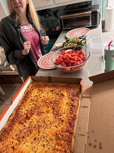 My family stopped in tonight to get some pizza to go! It is plunge weekend so I expected a wait, and happily did so! The and her bestfriend were serving tables and as a restaurant manager it was a delight to see them working so hard together & turning tables quick! We got a large cheese pizza & a small pepperoni pizza - now the pizza is not hand tossed but it is still delicious! Will be going back to try their wings, they smelled so good! The front of house team at the counter were very sweet, and let everyone know of the wait, and handled...