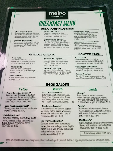 Read moreDisappointed. Went in got sitting about 5 minutes after arriving. Sat in seat for about 15minutes before anyone came over to acknowledge I was there. Waitress comes and ask if anyone helped me yet and to find out who's the waiter/waitress. After she finds out, she tells me who my waitress will be and ask what drink I would like and serves me my drink. She brings my cranberry juice and straw. I sit there another 15 before my waitress finally comes over and takes my order. I order my food and sit around watching the environment. The to go orders were going out faster than the in Restaurant orders. Some waiters were hustling and getting customers orders out but my waitress seem confused and overwhelmed walking back and forth. Some customers that came in after me had received their meals and I was still seating there waiting for my order. I kept looking at my watch and realized I was there 30 minutes and still no food. So I put my coat on and walked out the door and came home and made my own breakfast. I heard good things about Metro Diner and wanted to try it for myself. I didn't get a chance to...