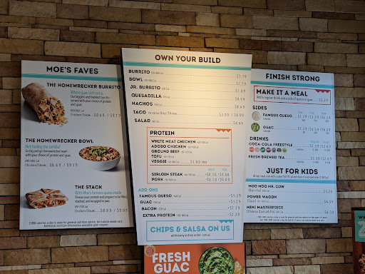 Read moreTried for first time an hour ago, and it will also be our last. Dirty dining area- tables all dirty, needed cleaning. Doors on cabinets under sodas broken, hanging off... accident waiting to happen. As for the food? Chicken, beef, pork all cold, as in refrigerator cold... Beans and rice also cold. I ate only a few bites, my friend ate most of his lunch. Saw employee fill up steam table with COLD water out of spigot... no wonder. Watched employee take cold pork out of fridge, put on grill for LESS THAN 15 SECONDS, then another employee sweep it up off the grill into the cold steam pan. No way that food is kept at proper food handling holding temp of min 135 degrees. Health dept needs to visit this place! Stay away from Moe's if you don't want to risk getting sick. EDITED TO ADD we BOTH got sick from the food we ate there within 2 hours....