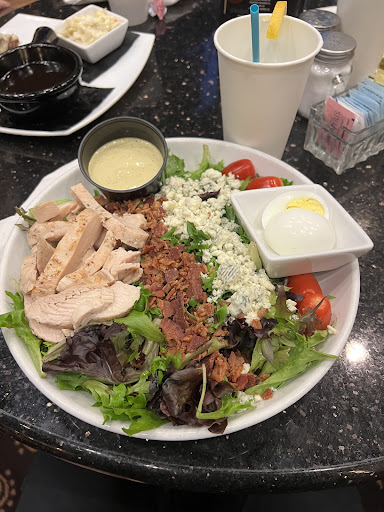 No wait for seating. Hightops booths and bar seating available. Attentive server. Nice selections of food choices. Weekday specials. Asian salad was plentiful and the dressing had a good flavor. Also got the burger which was juicy and large. Just a short walk around the side of the casino and up the elevator to the upper level bar and restaurant. Great spot to watch...