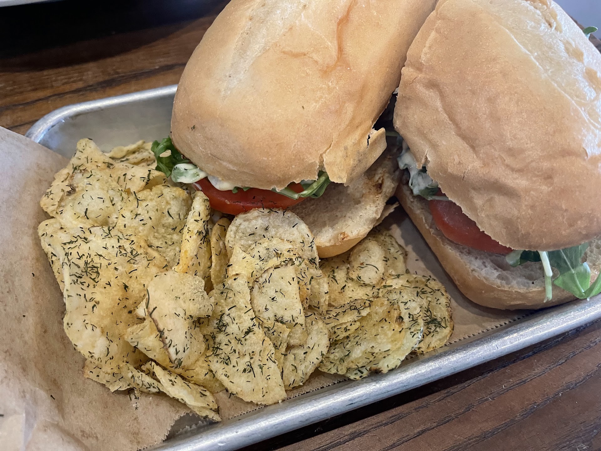 Read moreIf you have several hours to kill, this might be the place. Unfortunately, we didn't. We thought we had plenty of time, but after an hour and fifteen minutes later we didn't have time to finish our meal. Not sure what happened. We were told they were inundated on the patio, but as we left, there were seats open. Inside, I'd say it was only about 1/3 to 1/2 full. There was plenty of help, as I counted at least a half dozen employees on our side of the establishment itself. And yet, we didn't order until after a half hour of being there, getting our order for appetizer wrong, and then ended up waiting almost 45 minutes before our sandwiches - yes sandwiches - arrived. There didn't seem to be one thing wrong. Our server was pleasant and apologetic. But there was just no reason we could see that with all the help and so few customers anything would take so long. Judging from other reviews, it looks like service is going to be something they have to improve upon. As we didn't have time to actually eat the food, I won't rate it since I"m sure it would have tasted better not having to heat...