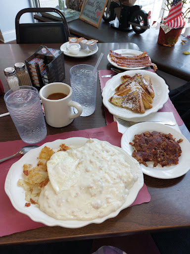The food was delicious only need a little bit more salt and pepper on my sausage gravy over biscuits. Also got an over easy egg, sliced potatoes barely crisped (asked for well done), they needed seasoning. My friend got the French toast with a side of bacon. Very good she said, she ate it all, it was so tasty. We got waters that were not refilled. I was asked several times if I wanted my coffee refreshed. I did not need it, way too bitter for my taste. We will be back small compacted...