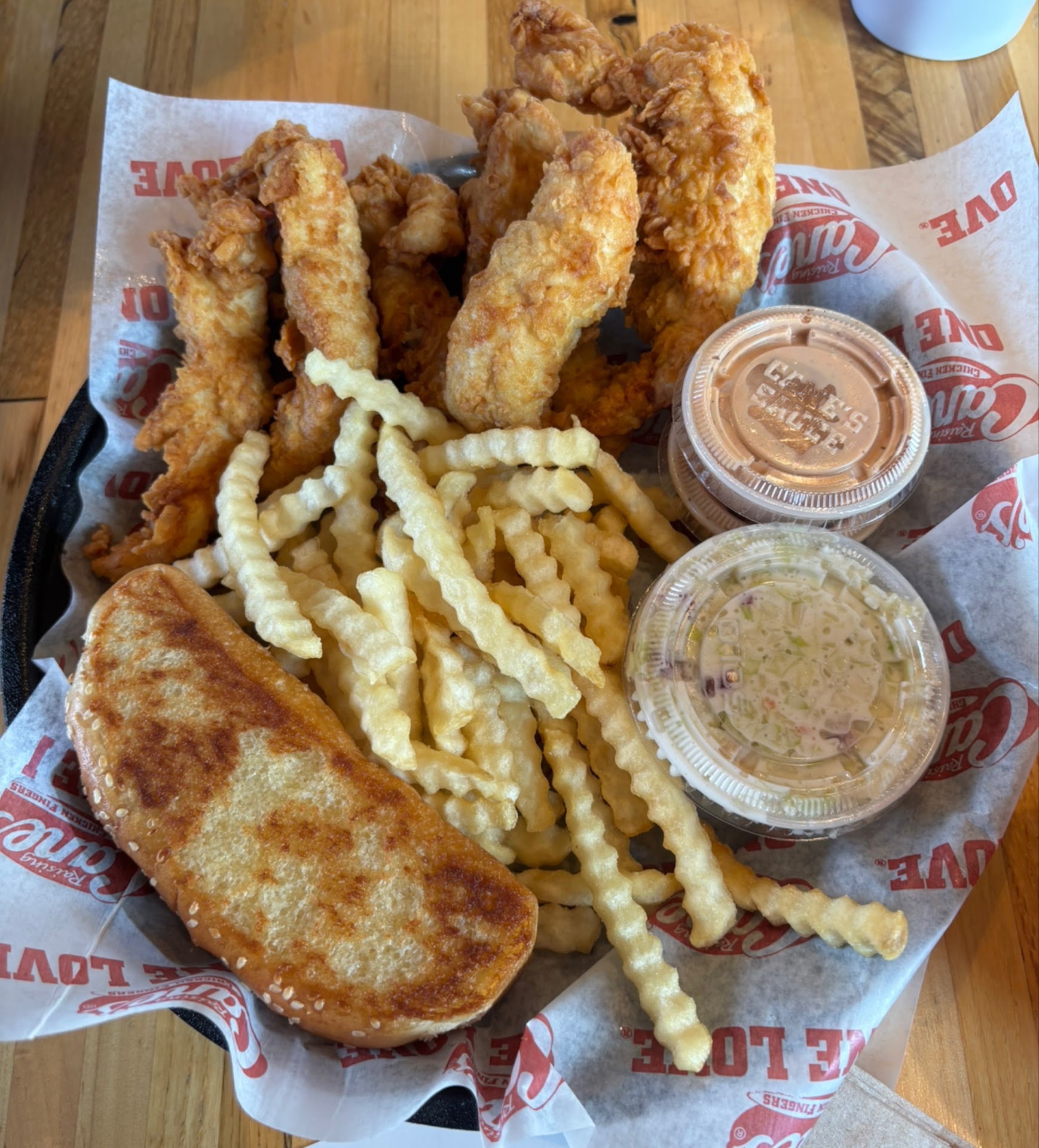 I always make sure to get an extra canes sauce and just completely cover my chicken strips until they cannot hold any more sauce.