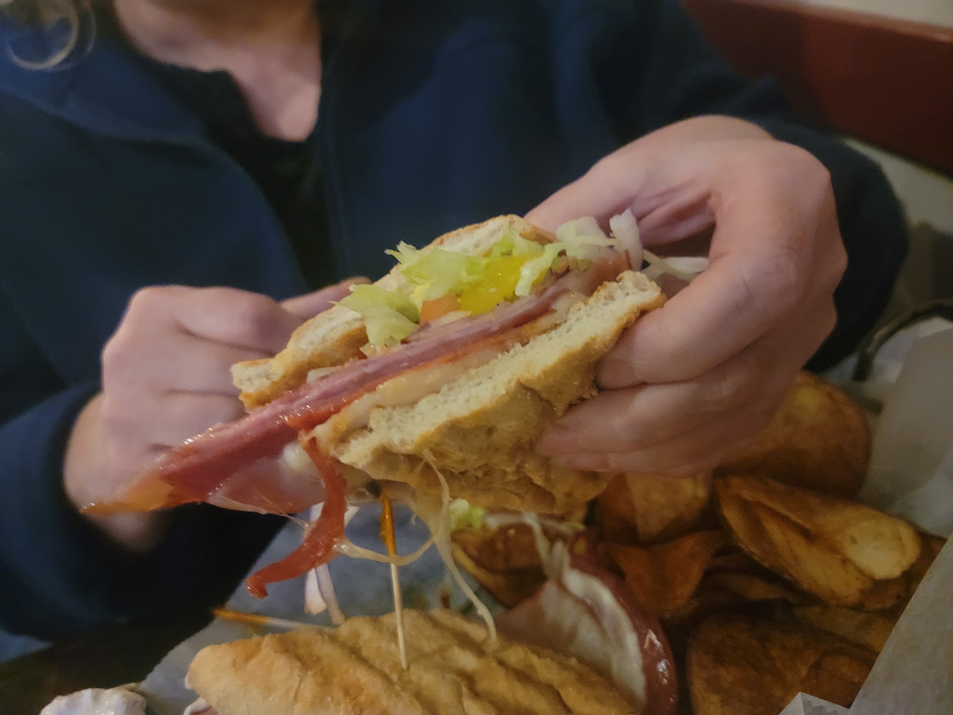 His whole meal arrived, including lukewarm warm fries. Sandwich was so soggy he could not pick it up. Guess that is how it’s supposed to be ?!??