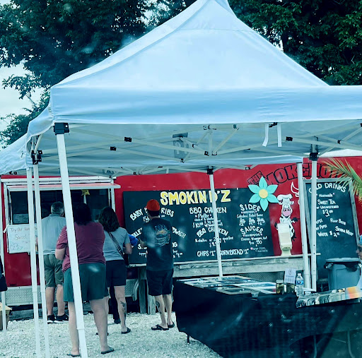 Smokin D’z BBQ has made the move from the old Cave Neck location with aplomb and made that corner of the Hopkins Farm Creamery parking lot their own. Parking is ample, seating eclectic & comfortable. Wood is stacked around the cooking pavilion where one can view the smoking & grill operations. Orders are made next to a large board with the regular menu with specials teasing you on supplemental posters that come n’go... Though we’d called in most of our order, we wanted to add more so had to do the line a short time. Ordering was easy & credit cards & cash work. She waited, maybe 10 minutes for bbq order as I went to get some ice cream (a BIG PLUS of them co-locating with Hopkins!) & we are gone.