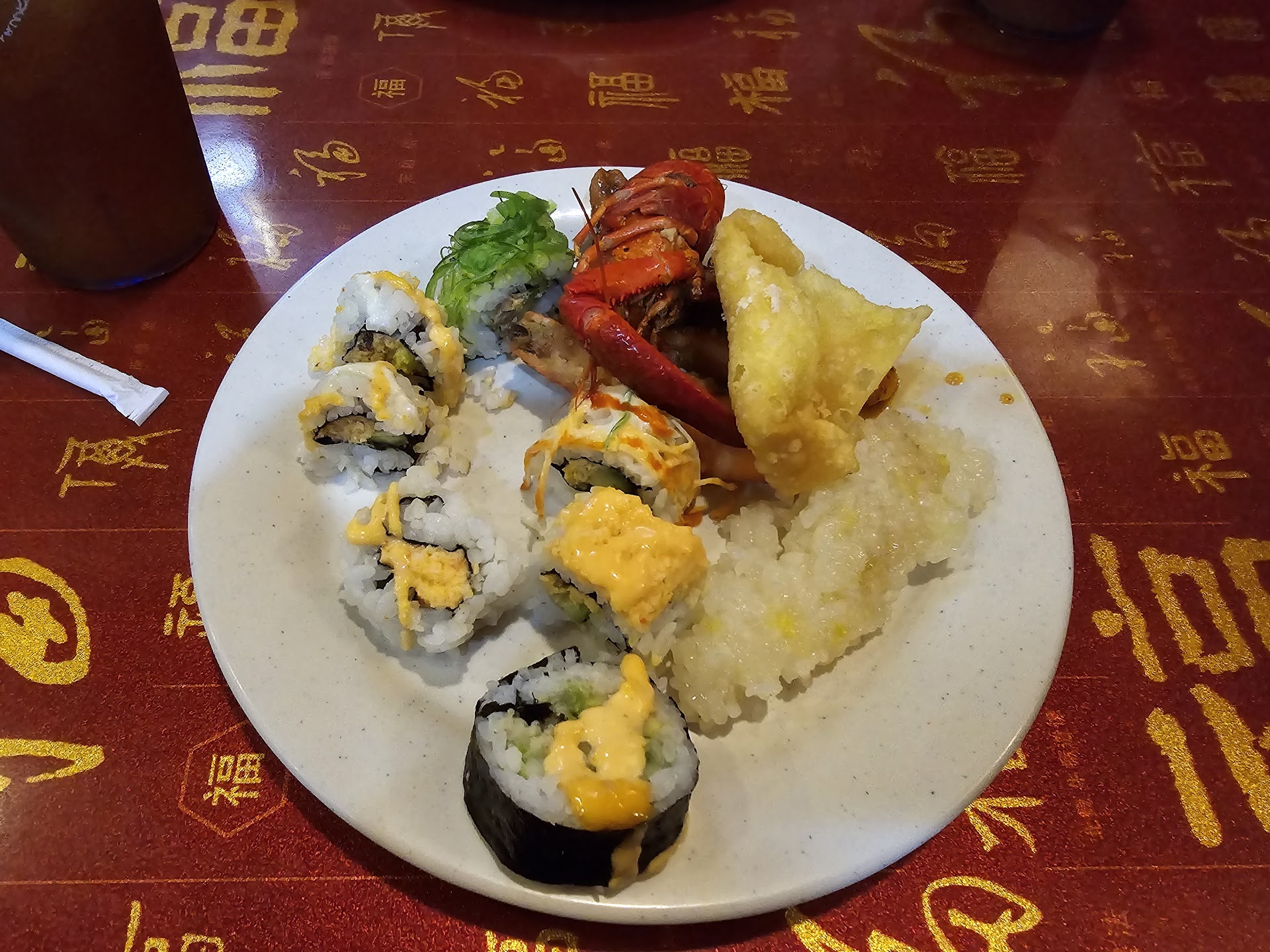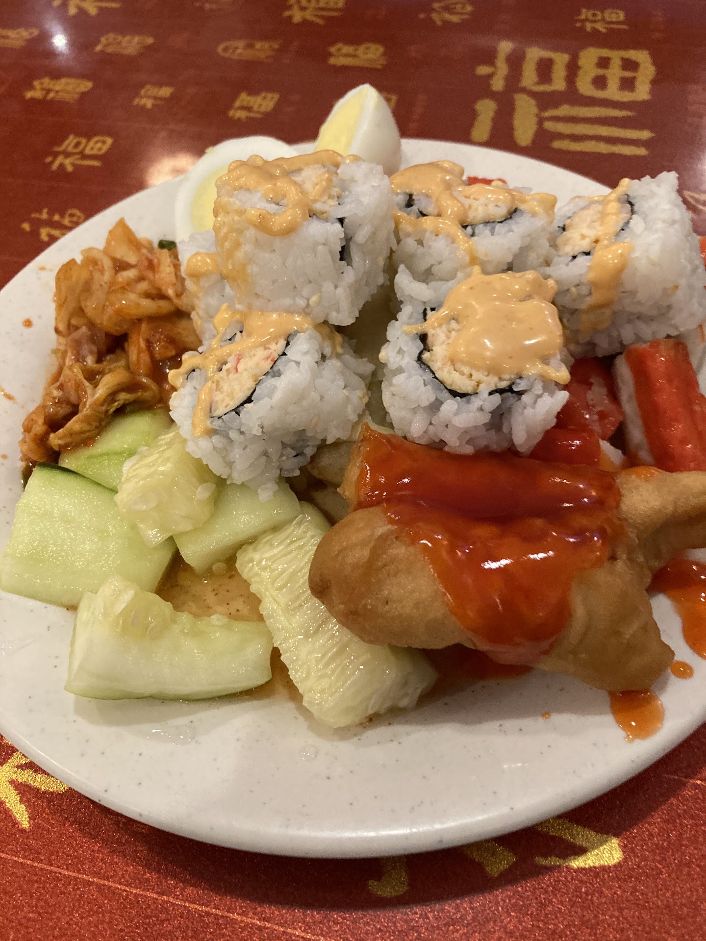 Some of the food was okay and some was terrible. The rice, egg rolls, spring rolls were okay to me. The teriyaki chicken was so salty you couldn't eat it (and I love salty food). I was happy to see they had bourbon chicken as it is a favorite of mine, but theirs was absolutely terrible. The general tso's chicken had zero spice. It was actually sweet and tasted more like honey chicken. The Chicken sticks were pretty good.