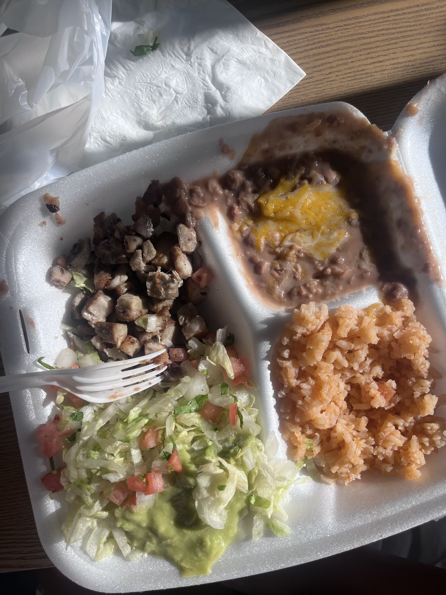 Read moreTried this because I miss San Diego taco shops. I ordered the carne asada fries and they completely messed up my order. Unfortunately, I didn’t check my food until I got home, which is 20 minutes away from the shop. Usually I say “oh well” and remove what I don’t like. However, there was no fixing this. I ordered the sour cream on the side because hot sour cream grosses me out. They did gave me sour cream on the side but when I opened the box, my food was completely smothered in it and had already coagulated from the heat. I decided to drive all the way back, which was a 40 minute deviation. I let them know that all I wanted on my fries was the carne asada, shredded cheese, and the guacamole. What they had given me was carne asada, shredded cheese, sour cream, and pico de gallo. I was super annoyed that I had to go all the way back to get this corrected. It also took me speaking to two different people in two languages and repeat my order at least 3 times to get it made right. Also, one of the people I talked to seemed like he wasn’t trying to remake my food. He kept inspecting it and when I pointed out that they didn’t even add the guacamole, he finally said, “oh, you’re right.”Bottom line, check your food...