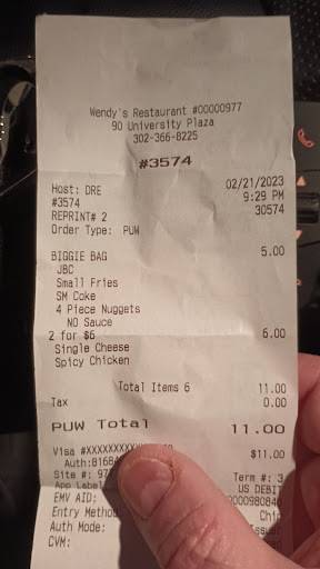 Read moreThis location is always either super busy or a tiny bit slow yet my order is always somehow mixed up, wrong, or literally handed to someone else when they have about 10+ staff at any given time so whatâs the problem ? That being said I donât expect too much, but was fairly disappointed on 2/26. I ordered food and they only handed me the drink and told me to âgo up to the door and weâll bring the food outâ at 6:52 pm. So I pulled up behind another car that was sitting there, this was a large white suv which is totally different from my small black sedan. During that time someone comes out and hands my food to the suv waiting in front of me, this is relevant because I didnât know that was my food and I moved up and waited 20 minutes for mine. My friend ends up going inside the building and tells the staff weâve been waiting for our food until about 7:10 and they state âoh we already handed that food outâ and when my friend says we didnât get it they say âoh you werenât thereâ so which is it? If you gave our food away you obviously thought I was there in a totally different car. And that doesnât make sense because you already handed me a drink and by that logic would know what car Iâm in already right? They end up remaking our food which is great and appreciated but the customer service needs work, donât make stuff up about the customer being wrong when youâre the one who made a mistake just own up to it and talk to me like a person about it. Wendyâs isnât gonna shut down over having to remake my $10 order that got handed to...