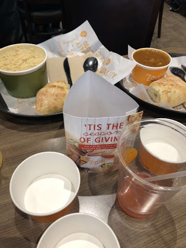 Read moreWent to Zoup with a couple friends. One of my friend’s heard from someone else who described it as having very tasty food. My friend summarized it as a better version of Panera Bread only with better selection. Right from the beginning, the staff was super polite and introduced the different things you could get in the menu as well as the bowl sizes. She even offered small taste samples of any soup of our selection. They come in small black containers and it was a great way of choosing which soup to select. Anyway, I got the chicken pot pie bread bowl. It was delicious. After finishing up my soup in the bread bowl, I was full with just eating half the bread bowl. I also had the classic mac which came with breadcrumbs. That was really tasty. It came in a large plastic container. There were a variety of fruity drinks. I had the classic lemonade. It was refreshing. Overall, the staff was polite. The atmosphere and lighting was great. If your into soups, this is the...