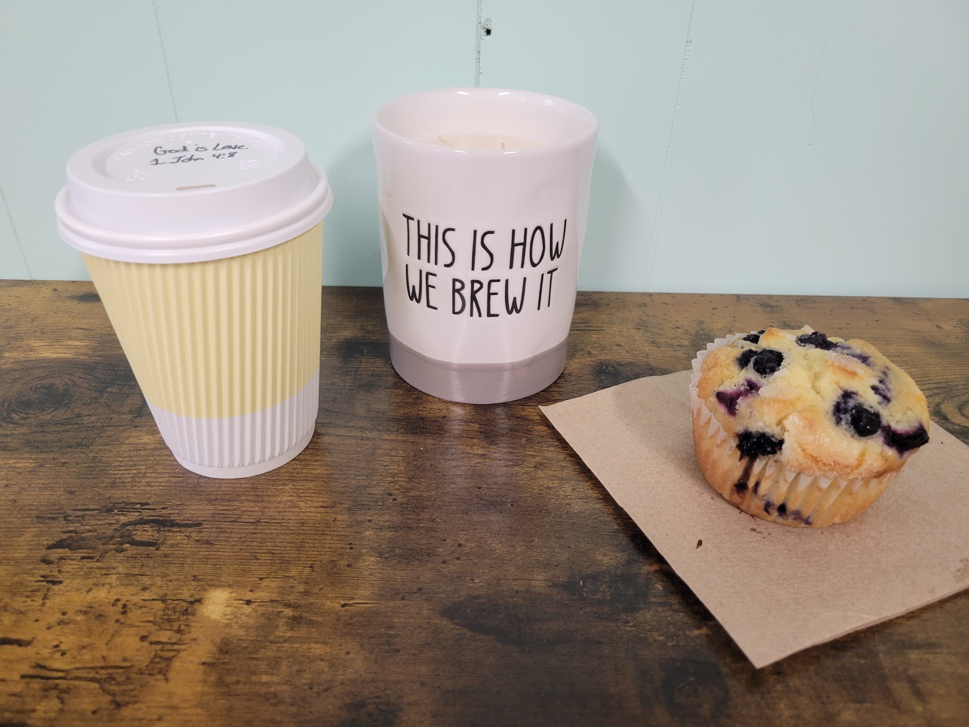 Read moreSaw a post on Facebook about their homemade blueberry muffins. Decided to come down and check it out for myself. The muffin was absolutely delicious!!! Grabbed a small coffee as well. The young lady at the counter said it was a local brew, and it was amazing as well. Cute little seating area inside and out. Great little spot to sit, eat and enjoy...