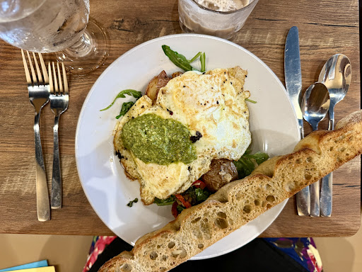 Brunch: Went back about a month later for brunch with our young kids. The waitress this time was amazing. So sweet and helpful with our kids and finding something on the menu they would enjoy. The problem is that they don't have a kids' menu, and there isn't much on the menu that is kid-friendly. For advertising as a family-friendly restaurant, this was unexpected and disappointing. One of the items I thought the kids might like, they were also out of. With the help of our waitress, we figured out how to modify some of the menu items for our kids, and the chef agreed to the changes. The meals, once again, were ok. Everyone enjoyed the bread that was served with the dishes. My biggest issue with the food was the description vs. what was served. For example, I ordered the Fried Polenta with Sausage Gravy. I guess their version of sausage gravy is sausage tossed in pesto? Why wouldn't it say that on the menu? The same thing happened with my husband's breakfast bowl. Neither of us really likes pesto, but it was ok. If the description had clarified pesto, I definitely wouldn't have ordered it.