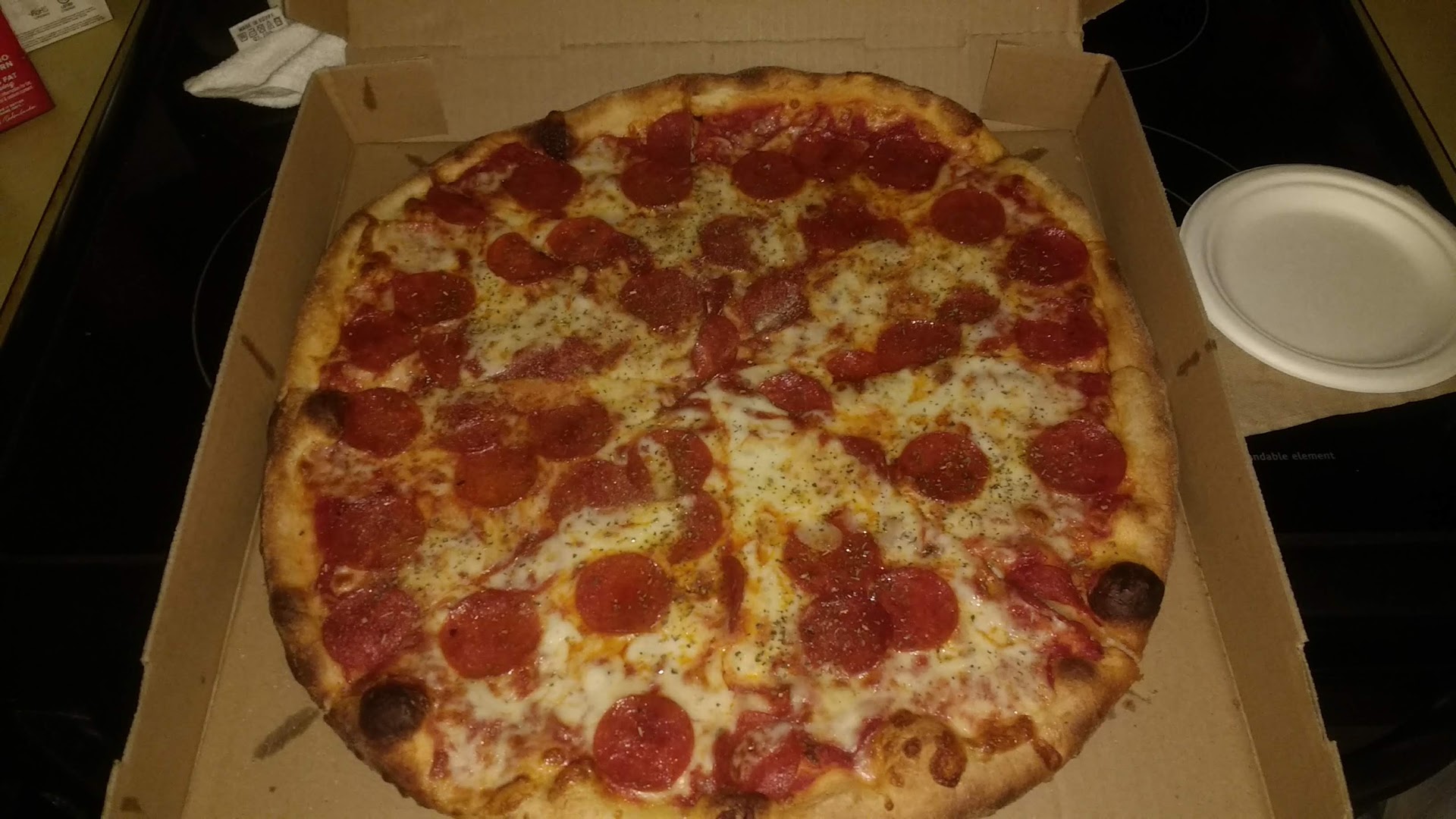 We got wings, a plain slice of pizza, a cheesesteak hoagie, and the item we were really craving - fried calamari. Wings were ok but nothing to write home about, and they really skimped on the bleu cheese. The plain slice was actually pretty good.