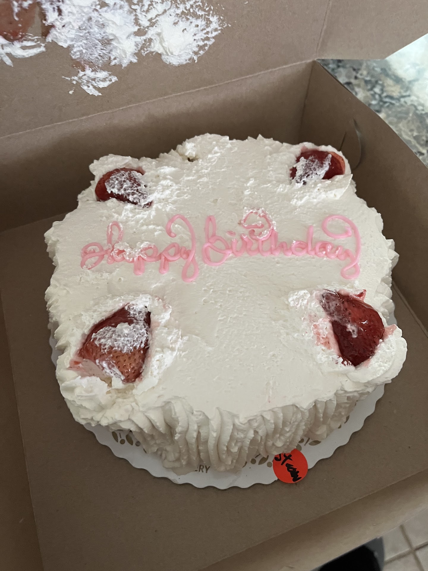 I ordered his birthday cake online with 24-hour notice and set my pick-up date for November 30, 2021. The online ordering process was quick and easy. The payment was paid online. I ordered a vanilla cake with banana filling and whipped cream. The cake was delicious, moist, and the bananas were fresh. I paid for the cake online.