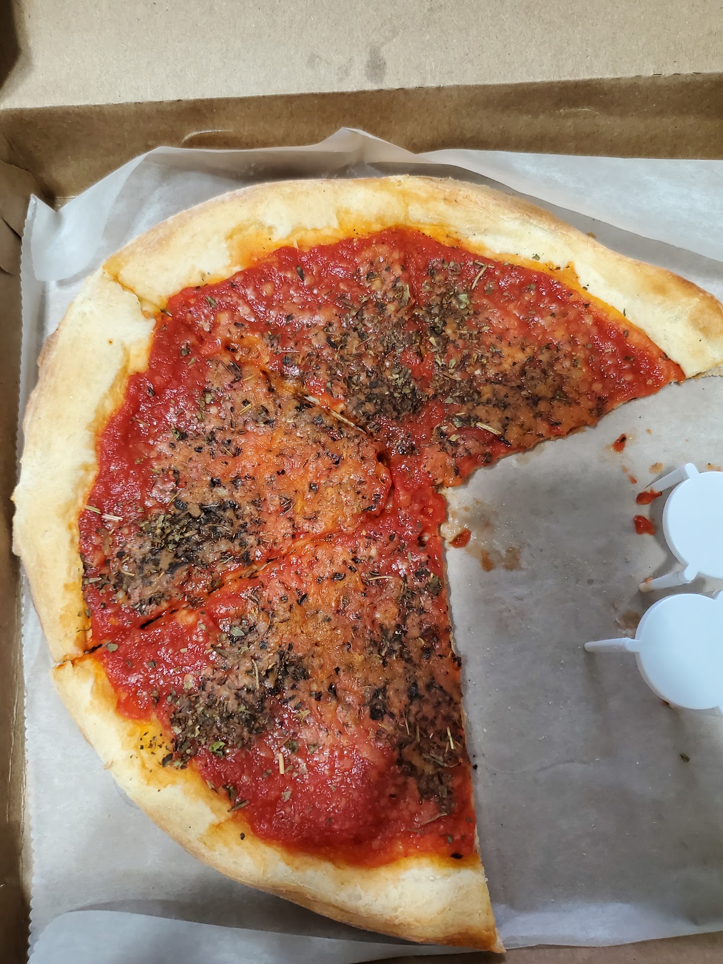 This was the worst pizza experience I've ever had. We ordered 2 personalized pizzas, a cheesesteak and cheese fries w/mozzarella cheese. We ordered 25 minutes before arriving to pick it up. Once we arrived to pick it up, we had to wait another 30+ minutes to even get the order. Not sure if they were milking the cows to make the cheese. My husband asked how much longer our food would take and the girl at the front desk mocked him. Ended up getting home with the food. My "Margherita pizza" is in the attached picture. No mozzarella cheese in sight. Our mozzarella cheese fries had cheese wiz on them instead of mozzarella cheese. The girls working there got a few phone calls while we were there and it seemed like others were calling to ask where their food was. I would never order here again. Terrible service, didn't get the correct food, took...