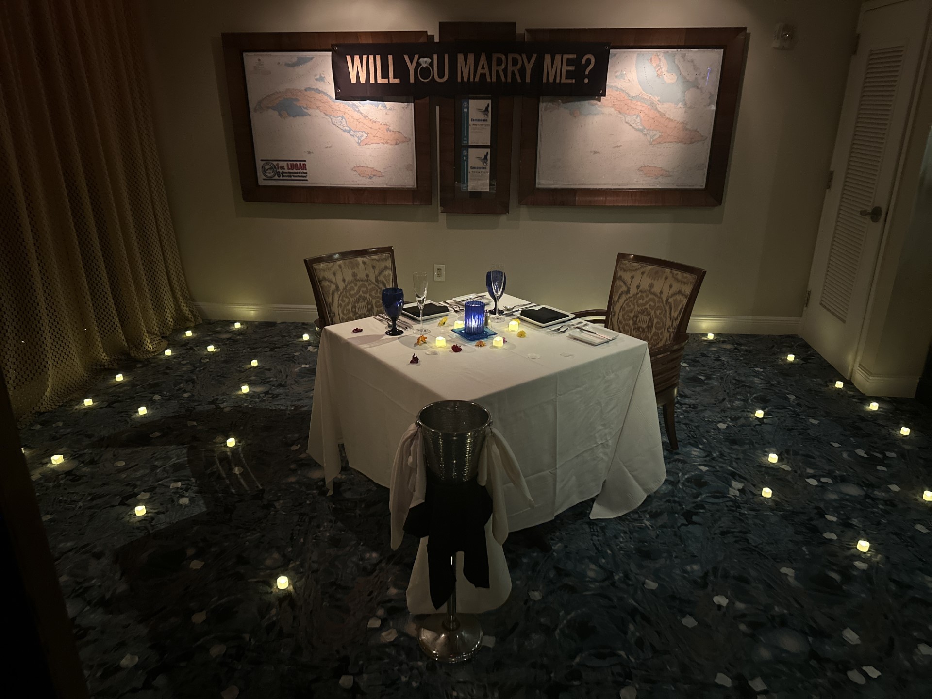 The staff went above and beyond, embodying true teamwork and friendliness. They even lent a helping hand in properly hanging the "Will You Marry Me" sign. The proposal went off without a hitch, and to our delight, the restaurant surprised the newly engaged couple with a glass of champagne to celebrate.