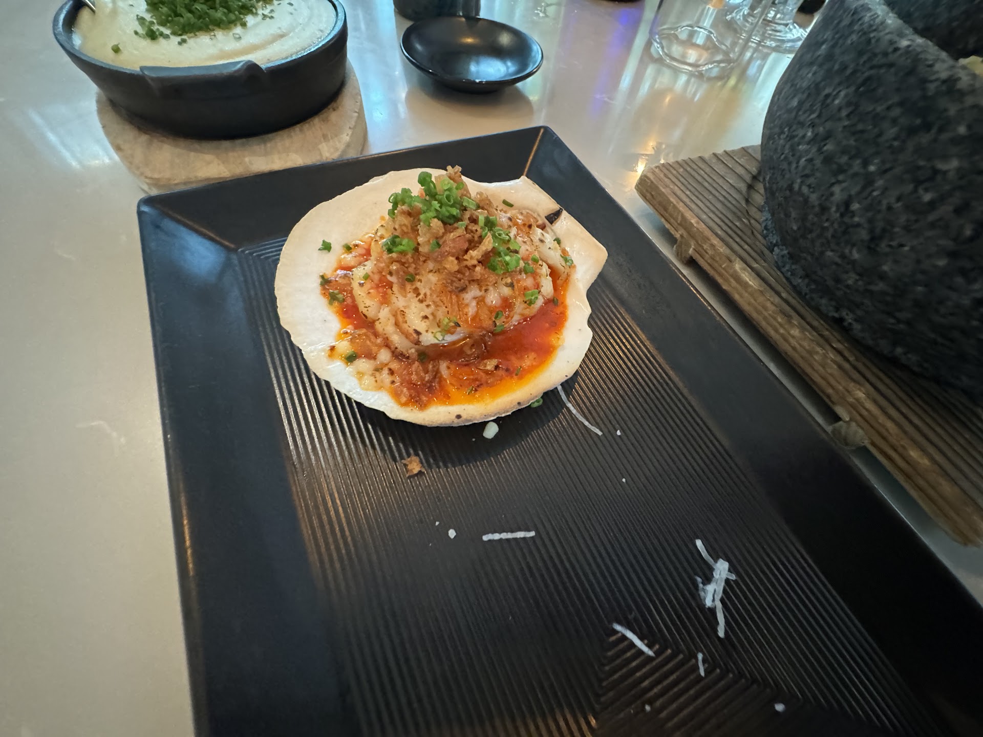 For the main we ordered the Perfect Storm Roll and the Hot Mess Roll (~$26. ea). Honestly, bland and nothing special. I've had better at many a lower end Sushi restaurant.