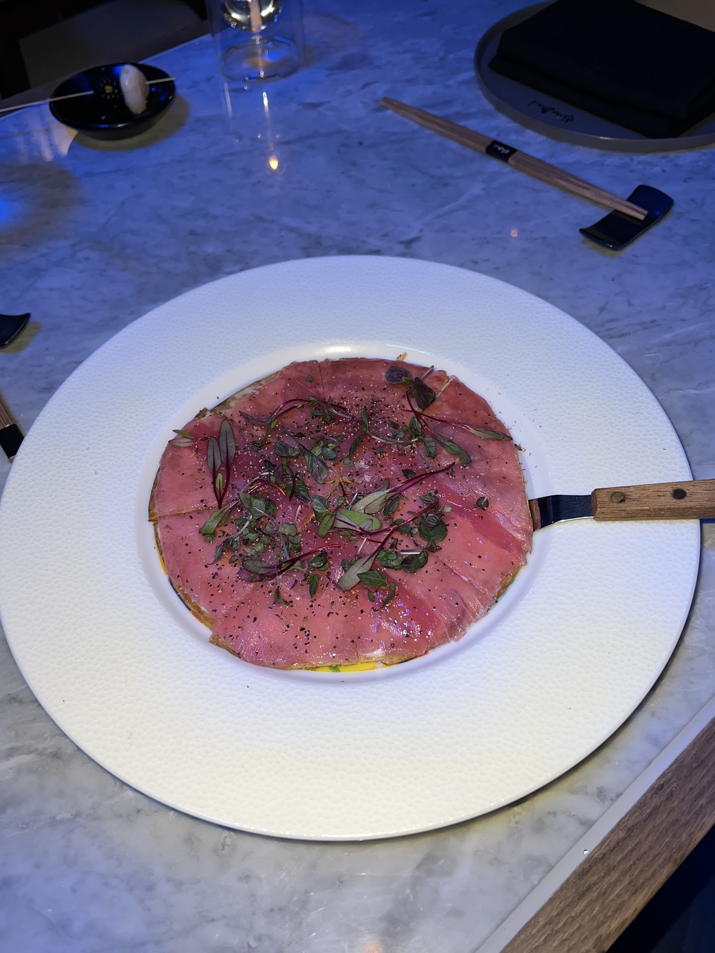 Our waiter, Adam, was outstanding. His attentive service and friendly demeanor perfectly matched the upscale yet relaxed atmosphere of Akira Back. He was knowledgeable about the menu and offered great recommendations, enhancing our dining experience with his charm and professionalism. The general manager, Helvio, also stopped by our table to check in, adding a personal touch with his warmth and outgoing nature, making us feel right at home.