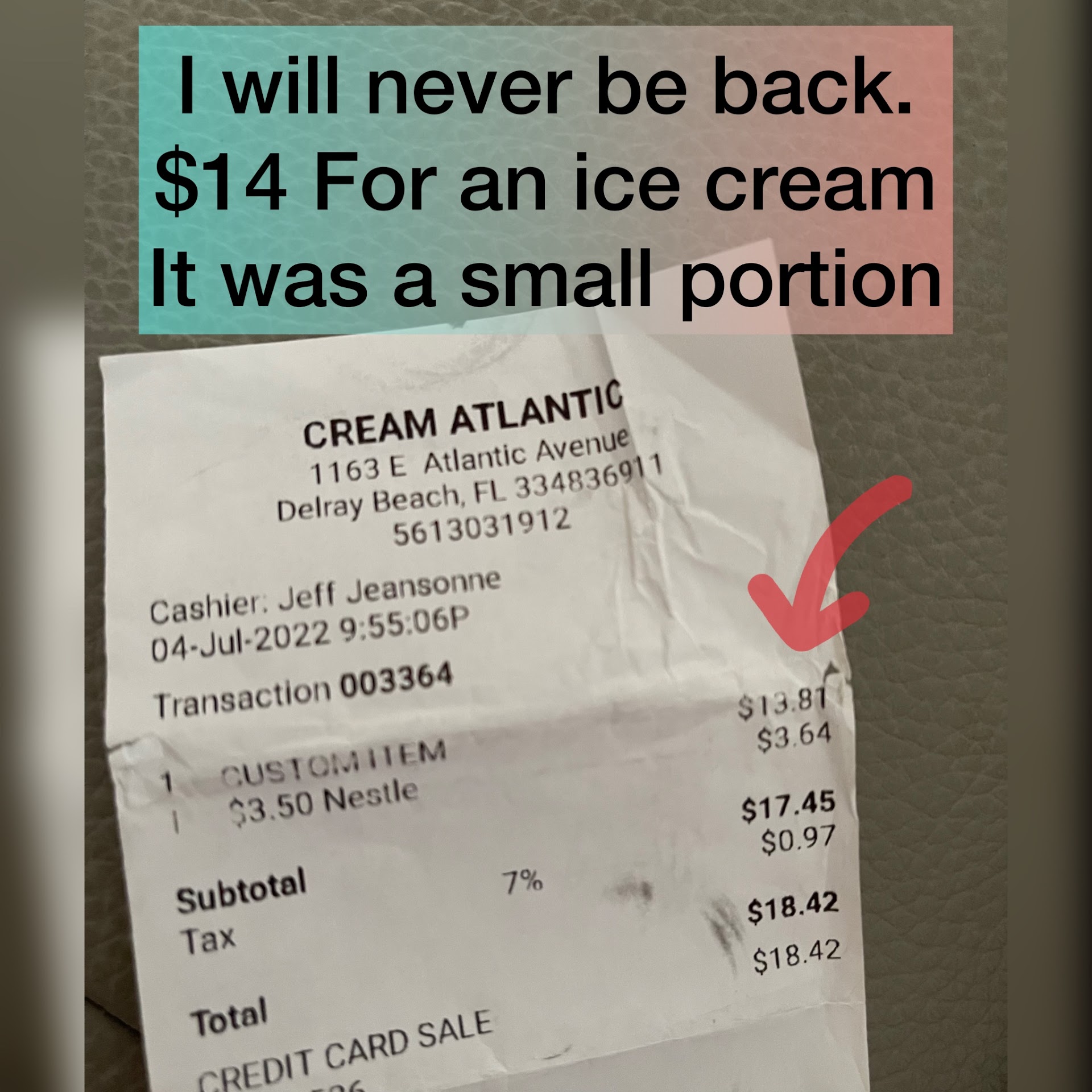 Ā Ā Ā Read moreDo not eat at this place!!! They do not wash the scoops properly and they cross contaminate the ice creams. My friend has a severe nut allergy and the girl behind the counter did not rinse or clean the scoop, she just scooped her ice cream and gave it to her. My friend started having an allergic reaction after only eating 2 spoonfuls of the ice cream. Our other friend and her asked for a refund and they refused to give it to her at first. We had to get loud and demand a refund. The girl at the counter was also laughing at my friend for having an allergic reaction and kept telling her she is not allergic. So for your safety and any families safety DO NOT EAT HERE IF YOU...