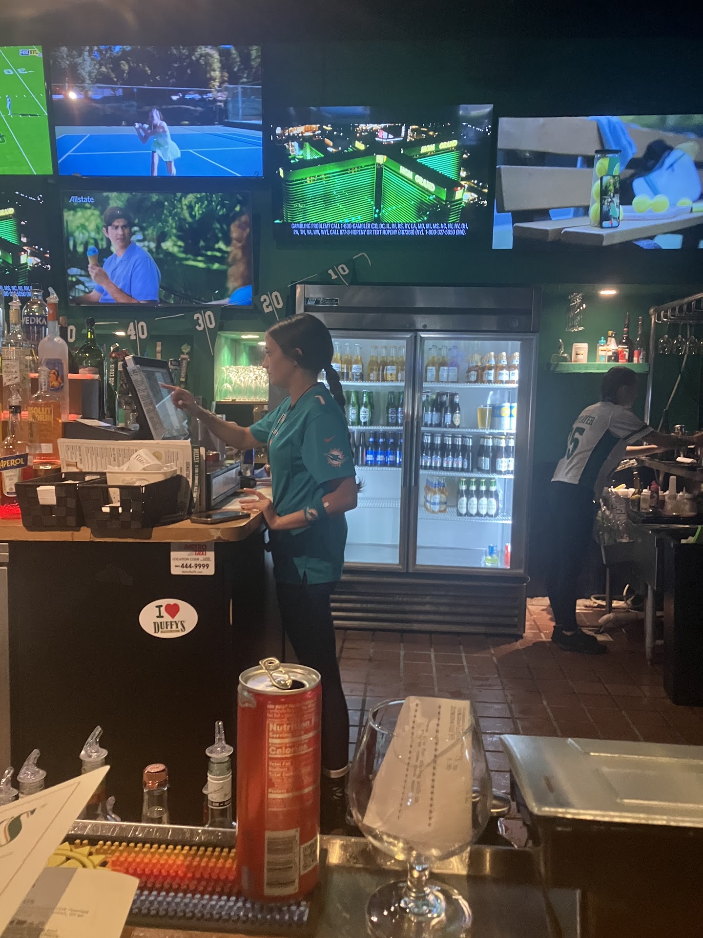 Read moreI wanted to share my experience at Duffyâs in Delray this afternoon, which also happened to be my first time visiting this establishment since moving to Southeast, Florida this year. Everything was going great my first hour in and sitting at the bar to watch my football team. There were two lovely people sitting on each side of me (unrelated and unknown to me) including a sweet and wonderful 83 year old gentleman regular who had a couple glasses of wine over a several hour period. By the time this man finished his last drink, one of the bartenders, âErinâ (picture included) provided him the bill and then pressured him incessantly (shortly after supplying it) to close it out.