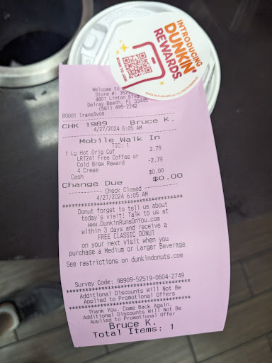 Read moreClean, good, fast service. Just be careful pulling in and out of this parking lot. It's in no way DD's responsibility as there are numerous other stores in that Centre however, it's a narrow lot with traffic "flying" into the lot from Military Trail. So please don't speed through the lot (the people and cars you save may just be your own!). Patience and courtesy get anyone so much further than cursing and leaning on a car horn. I don't wish to give the impression that it's not worth the time to go to this particular Dunkin Donuts. However, I feel that their quality of service and goods are held to a...