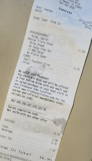 Dan Fox (NICE GUY) previous CEO is aware as well, but retired he can't do much. Franchise owners don't care AT ALL and it's truly unfair to someone looking for a quick tasty lunch. $12.00 for these two bites and $5.00 for tax, a small bag of Doritos 1 3/4 oz and medium fountain drink. Shame on you Firehouse Subs...